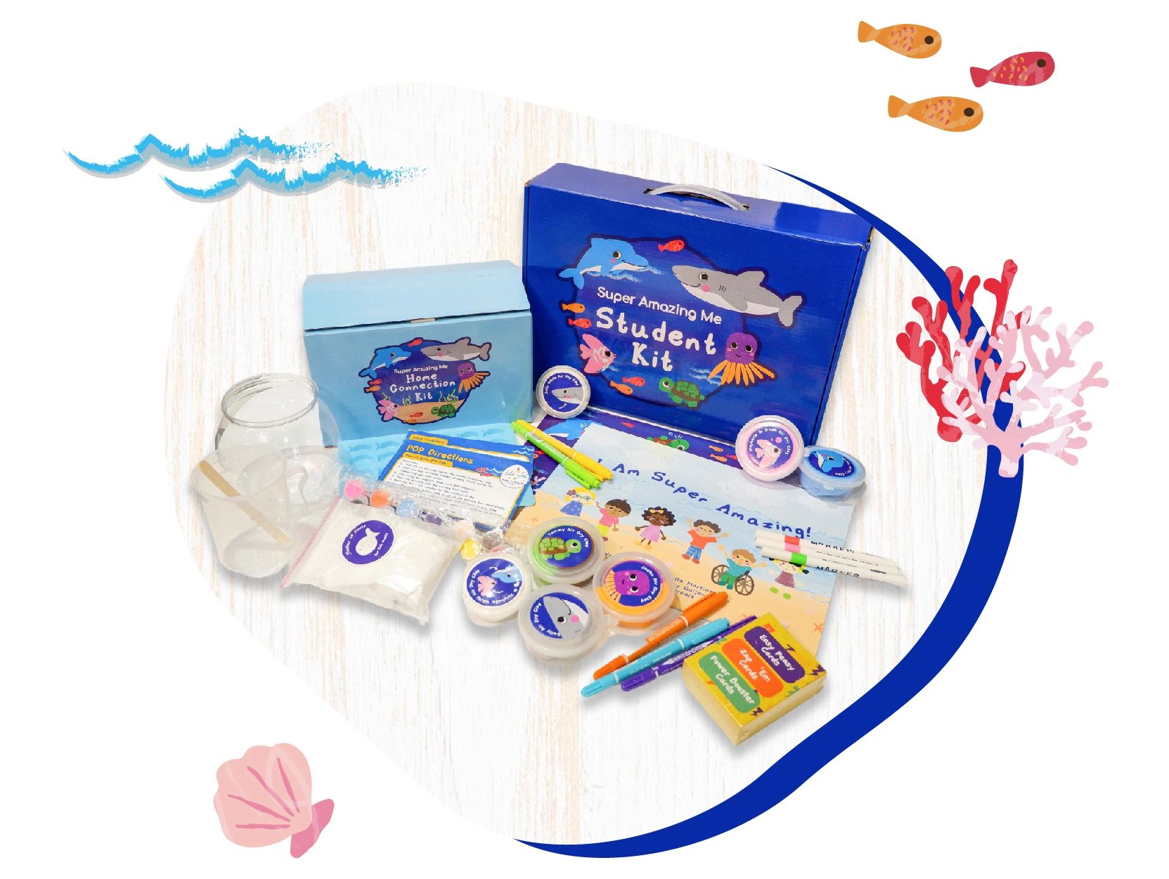 The Super Amazing Me Kit includes Home Connection Kit. Both kits are needed to fully participate in the SAM Program. The kits include air dry clay, cards, markers, bowls, journal and books. All these materials enhances the program which makes learning fun and exciting.